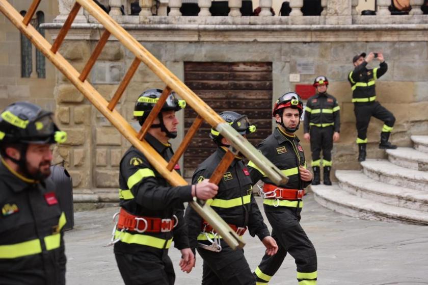 I Vigili del Fuoco di Sansepolcro fanno la scala controventata alla festa provinciale