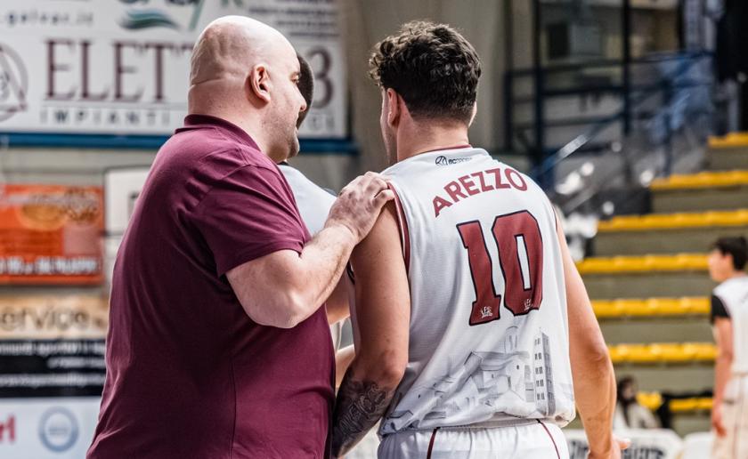 Comincia con un successo l'avventura di coach Marco Evangelisti sulla panchina dell'Amen Scuola Basket Arezzo che riesce a piazzare il colpo esterno sul parquet di Pratoe conquistare i primi due punti della Poule B. L'inizio degli amaranto è stato per la verità traumatico, la SBA subisce la partenza dei padroni di casa che con un Magni in grande spolvero che guida i suoi al 19-9 del primo quarto. L'Amen è in difficoltà in fase offensiva ed i padroni di casa premono sull'acceleratore con la coppia Danesi-Smecca che colpisce ripetutamente la difesa aretina che sbanda e finisce sotto oltre i 20 punti di scarto. Nel finale di secondo parziale i punti di Ghini e Calzini permettono alla SBA di chiudere sotto 43-29. Al rientro in campo dopo la pausa lunga l'Amen appare trasformata, i ragazzi di coach Evangelisti mettono a referto 27 punti in 10 minuti grazie ad una difesa finalmente convincete ce limita le bocche di fuoco pratesi. Pipiska comincia a prendere confidenza con il canestro, ma tutta la squadra appare più incisiva in attacco. Dopo il 58-56 a favore dei locali al 30' l'inerzia della gara sembra cambiare sponda, ma Prato non molla e reagisce alle triple di Pipiska e Castelli con Danesi e Magni. Arezzo coinvolge anche Cutini, ma Marini segna due canestri consecutivi che rimettono tutto in discussione. Nel finale concitato Rossi firma dalla lunetta il vantaggio (75-74) per l'Amen, dall'altra parte gli aretini difendono forte e Smecca prende un tiro dalla lunetta che finisce sul ferro su cui viene però ravvisato un fallo a tempo scaduto. Il giocatore locale sbaglia il primo tiro libero e segnando il secondo manda le due squadre al supplementare sul 75 pari. Nell'overtime la difesa aretina e due triple di Pipiska e Rossi mettono la SBA con la testa avanti, il giocatore slovacco segna i due liberi del +3 a 19 secondi dal termine. Prato ha il possesso del pareggio ma la difesa aretina tiene e Cutini recupera il pallone decisivo lanciando il contropiede finalizzato da Pipiska che fissa il punteggio sull'89-84 finale.