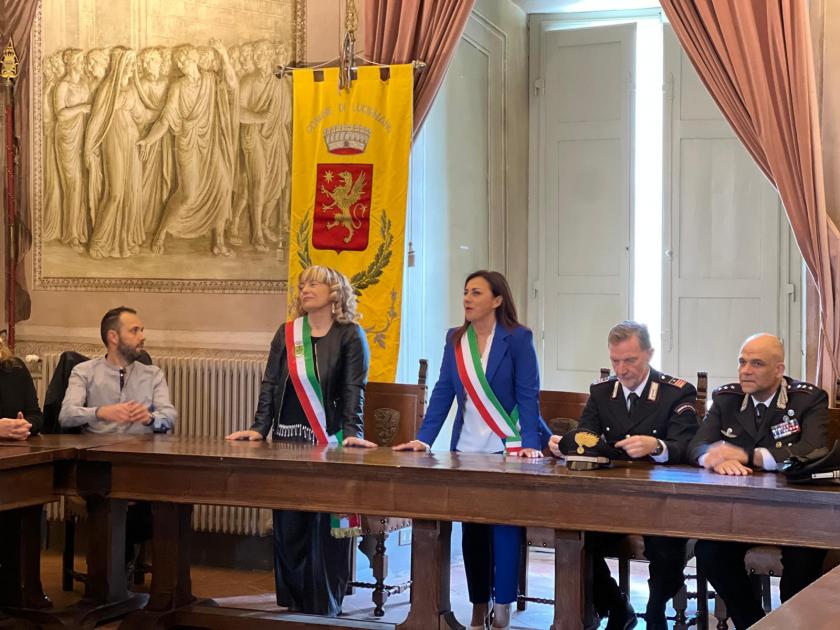 Il congedo ufficiale nella sala consiliare del comune di Lucignano con le autorità locali