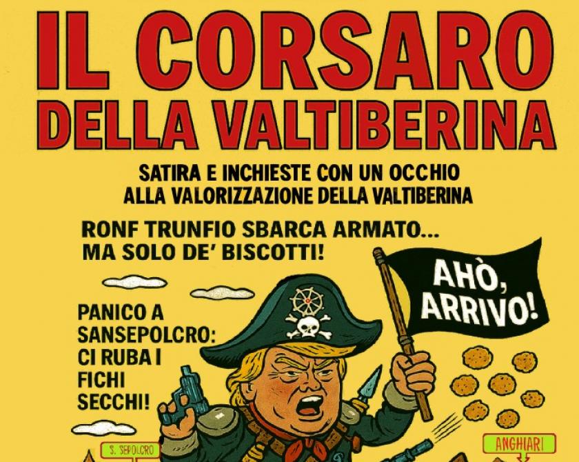 “Il Corsaro della Valtiberina”, un mensile satirico cartaceo e online, che non risparmierà niente e nessuno, distribuito inizialmente in duemila copie nelle edicole e nelle librerie della provincia di Arezzo e a Città di Castello ma anche online. Ventiquattro pagine di satira, foto notizie, graphic novel d’autore, riflessioni e inchieste su politica interna ed estera, amministrazioni locali, fatti e misfatti consumati sul territorio di una provincia toscana che non ha nulla da invidiare ad altre molto più note e frequentate. E per questo va assolutamente e con urgenza valorizzata. Quindi, una piccola rivista indipendente a metà tra il vecchio Cuore e lo storico Vernacoliere con un occhio alle buone pratiche e alla valorizzazione del territorio.
